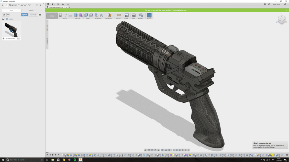 After designing some Star Wars lightsabers, I wanted to continue challenging myself with more complex movie prop designs. I decided to tackle Officer K’s blaster from Blade Runner 2049, which would be a great companion piece to the original Deckard blaster from Tomenosuke that I’d recently added to my collection.